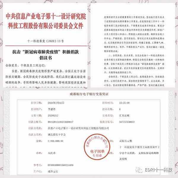 2月10日,根据董事长、党委书记赵振元同志的提议,十一科技党委向十一科技全体党员、干部及员工发出抗击“新冠病毒肺炎疫情”积极捐款倡议书。在党委的倡议下,各党支部,各部门、分院快速行动,全体党员、干部及员工积极响应,在短短两天内筹集特殊党费与干部员工个人捐款共计200万元,今天下午已汇至湖北省红十字会。