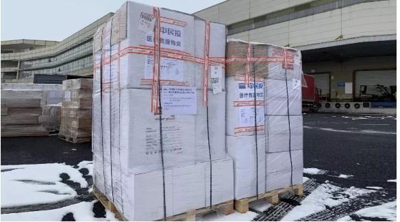 从欧洲各地到北京,再从北京到武汉,中民投捐赠的医疗物资经过两万里的爱心接力,成功抵达终点——武汉市第八医院。
