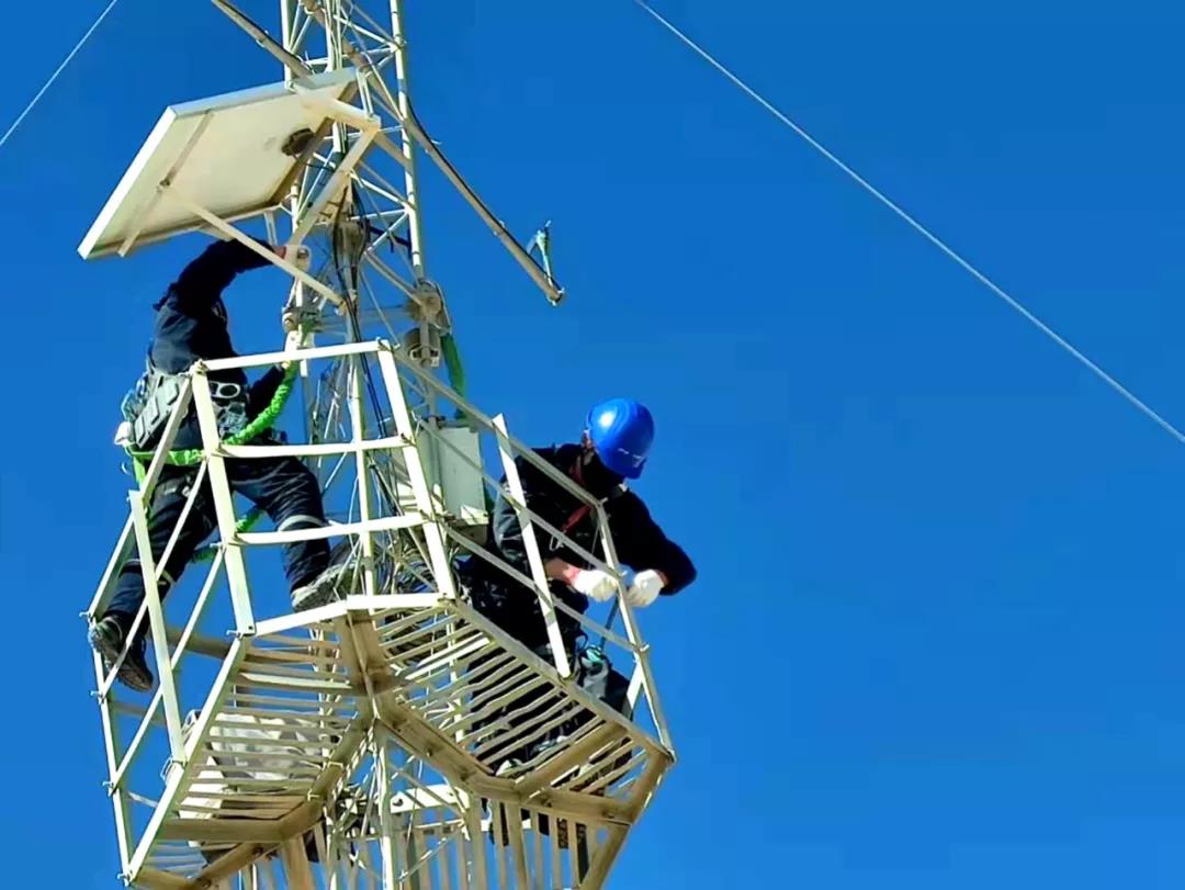 为保障正式复工后的安全生产,中广核青海大柴旦全通畅风电场工作人员姚斌、湛国江在高空对测风塔隐患进行消缺处理。在复工复产前期,为确保发电系统运行安全,坚决遏制重大事故发生,全通畅风电场在确保防疫措施到位的前提下,加大了重要输电设备巡视检查力度。