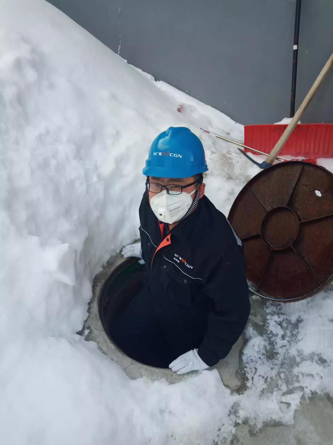 中广核阿勒泰清洁供暖热力站承担着阿勒泰市第三中学3.2万平方米的供暖供热任务,是阿勒泰的重点民生工程。在春节放假期间,供热站温度不减,全力保障在校值班教职人员的热力供应。为确保开学后全校热力可靠供应,热力站的两名春节值守人员谭涛、加力哈斯在落实各项防疫措施的同时,对全线管网、设备进行巡视。两名员工深入井下,行至管网,对输水管网压力、水泵运行情况、设备供暖温度进行摸底排查,全力确保供暖设备运行可靠。