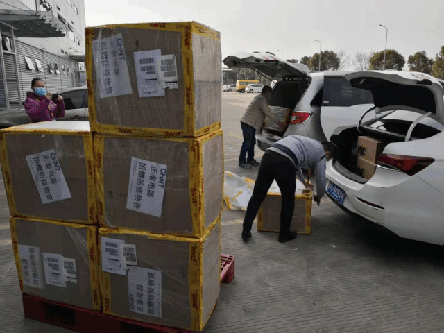 同样在当天21点,杭州市新冠肺炎疫情防控办派出的工作人员从正泰上海诺雅克仓库将首批运达国内的3M N95 1860口罩及一次性医用口罩等装运上车,并陆续发往杭州的防疫定点医院。