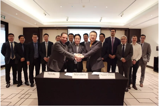 当地时间2月6日,中国电建集团贵州工程有限公司与日本丸红(Marubeni)和法国道达尔(Total)在迪拜举行签约仪式。贵州工程公司董事长、党委书记郭玮,法国道达尔公司CEO Laurent Becerra,日本丸红株式会社电力集团四部总经理Yuji Sato,在卡塔尔哈尔萨800.15兆瓦光伏项目EPC合同上签字。