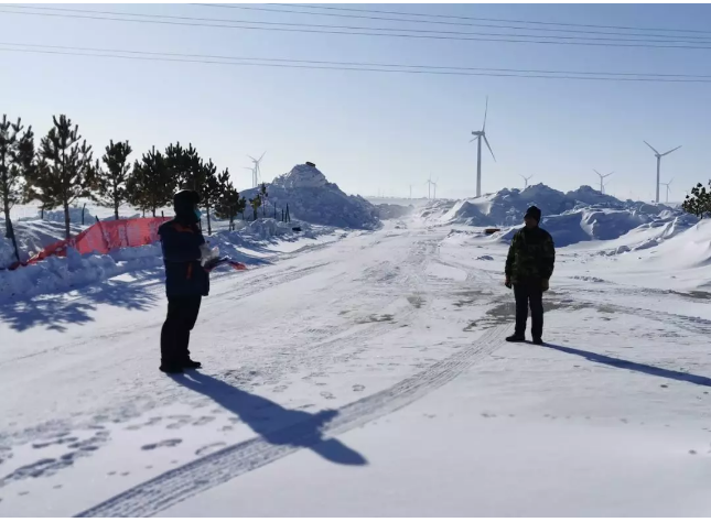 2月4日,宝力格风电场检修人员靳晓东、张志强在检修结束返回场站的途中经过牧民家,发现正在放牧的牧民乔宝林并没有戴口罩。随后,他们了解到,因大雪封路,牧场无法采购到新的物资,储备物资已经用完。风电场随即与牧场场部联系,通知有防护物资需求的牧民可到风电场领取。
