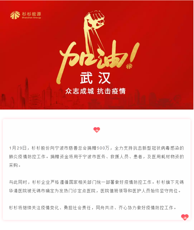 全力抗“疫”!杉杉捐资500万助力疫情防控阻击战
