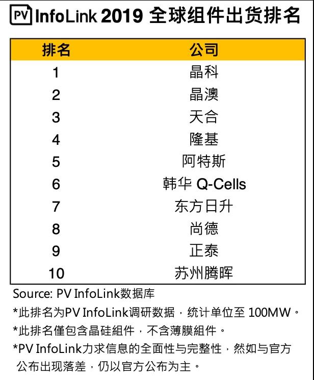 1月20日,第三方权威咨询机构PVInfoLink发布2019年全球组件出货排名榜单,晶澳太阳能蝉联全球第二大光伏组件供应商,让业界再一次见证了其稳健的力量。