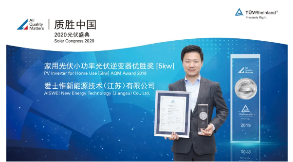 6月30日,备受行业瞩目的TUV莱茵“质胜中国2020光伏盛典”在苏州隆重举办,爱士惟再一次斩获逆变器优胜奖。此次盛典,爱士惟户用逆变器ASW5000-S凭借其卓越的品质和高效的性能荣获 “小功率光伏逆变器优胜奖”,再一次以实力证明爱士惟的品质实力。