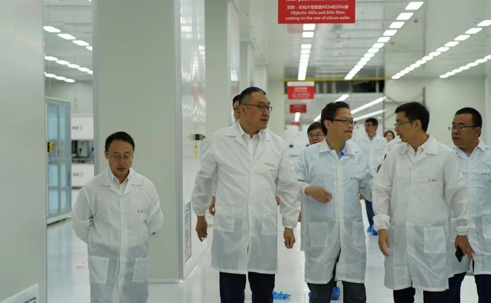 仪式结束后,在中建材浚鑫总经理孙杰、常务副总经理赵宏雷等公司领导陪同下,出席启动仪式的吴新宇、徐佳等各级领导参观了1吉瓦高效单晶PERC电池生产车间。