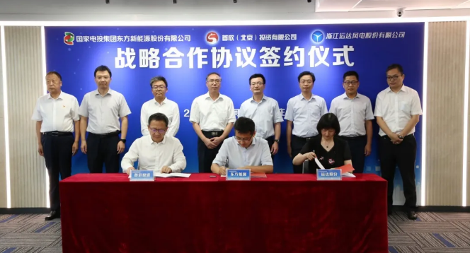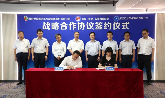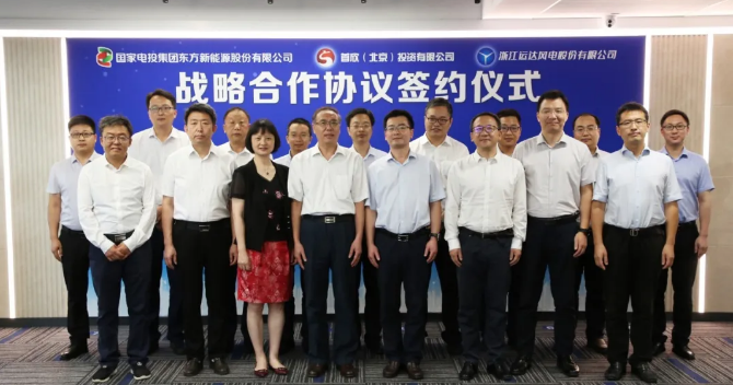 2020年7月10日,浙江省机电集团总经理兼运达股份董事长杨震宇,运达股份党委书记、总经理高玲一行受邀前往国家电投集团东方新能源股份有限公司,与东方能源及首欣投资共同签署战略合作框架协议。