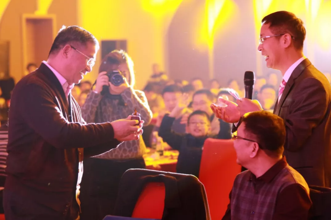 18:18分,年会达到第二轮高峰。林洋电力科技、林洋电力服务、华源仪器仪表公司的董事长,配网事业部、储能事业部负责人陆健先生受林洋管控委员会的委托,为南京团拜年会带来美好祝福,为了百年林洋,为了家人健康,为了辉煌事业,全场举杯同庆,共祝新年!