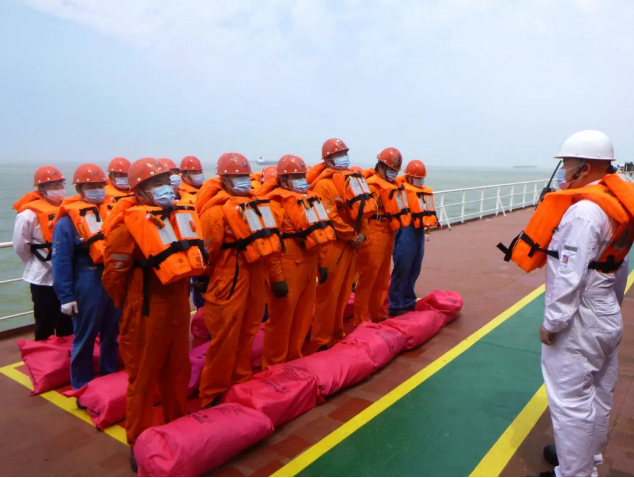 防台防汛期间, 宁波海运所属船舶始终坚持“以防为主、防抗结合、适时早避、留有余地”的防抗台原则,在台风来临前,扎实开展船舶救生和人员落水(搜救)应急演练,强化安全意识,提升专业技能。图为宁波海运所属船舶开展防汛防台救生演习。