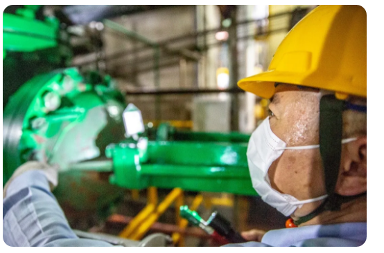 “迎峰度夏”期间,为确保公司设备稳定运行,港口公司操作部机务二班员工正在进行皮带机液压张紧油箱换油工作。