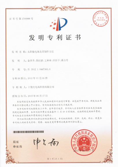 7月中旬,国家知识产权局发布了第二十一届中国专利奖授奖决定,江西展宇新能科技有限公司(展宇科技)提报的专利《太阳能电池及其制作方法》获第二十一届中国专利优秀奖。这是上饶市唯一获奖的奖项,也是上饶经济开发区首次获得该奖项。
