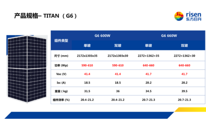尽管500W推出仅不到半年,但以210mm硅片为基础的600W+高功率组件已整装待发。7月23日,在由东方日升举办的210闭门技术研讨会上,东方日升组件研发高级总监刘亚锋重磅推出了TITAN系列G6组件,产品功率最高达660W。