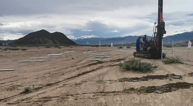 位于日喀则市桑珠孜区的江当现代生态产业示范园,被连绵的远山环绕。7月25日下午,伴随机器的轰鸣声,由水发集团投资建设的50兆瓦“光伏+储能”综合能源示范项目正在进行打桩作业。