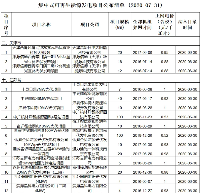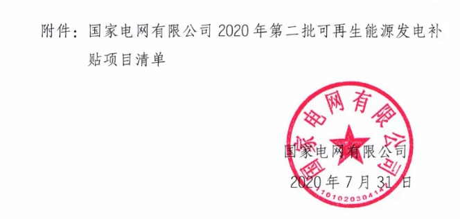关于公布2020年第二批可再生能源发电补贴项目清单的公告