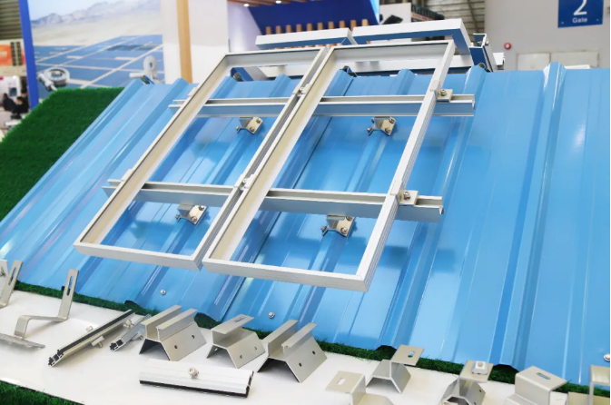 参展产品涵盖彩钢瓦屋顶、坡地、平地、山地等不同场景支架解决方案。全铝材质彩钢瓦屋面支架,安装便捷,已广泛适用工商业屋面项目。不同基础可选,多角度方向可调,地面支架高度预安装,日本出口级工业品质,现场到访客户咨询无数。
