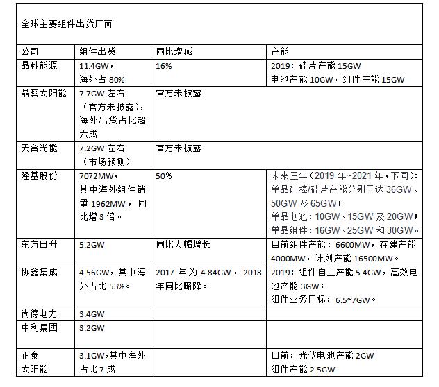 来自申万宏源的分析师张雷也曾表示,相对而言,组件出货量的排名较为稳定,晶澳持续在前五大组件厂商中占有一席之地,预计2020年晶澳科技继续稳居行业前三。