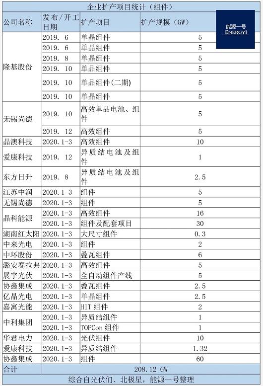 事实上,除晶澳科技之外,在下游端,全球各大光伏组件厂商都在加紧扩产。大量切片、拉棒需求也将激增。以下是能源一号截至今年5月对组件厂商扩容的统计数据。
