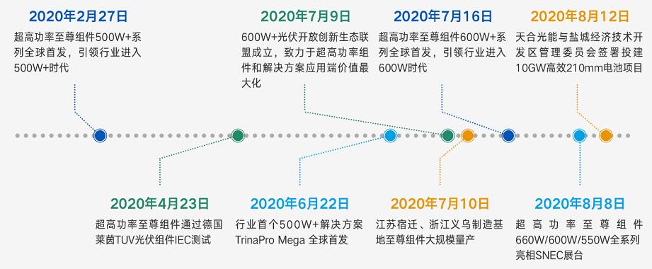 2020年,如果用六个字来形容天合光能的话,那就是“创新、突破、协同”。从年初至尊组件500W+系列首发以来,天合光能的研发从未止步,至尊系列不断实现升级突破,单片功率攀升至660W+,效率超过21.4%,定义了行业超高功率组件新标准。该系列产品一经上市就获得市场广泛好评,不仅提速行业技术创新,更为系统端降低BOS和LCOE提供了更加广阔的空间,保证稳定客户收益。随着功率不断提升、低电压,高串功率解决方案的产生,系统端BOS和LCOE下降具备了更多可能性,同时这一变化趋势引起了配套产业链企业研发与制造的创新。在产业链上,各企业共同协同、创新,推动度电成本下降,是行业进步发展的必然趋势。至尊600W+超高功率组件及系统集成新技术平台正在成为光伏行业未来发展的重要方向,为终端客户创造利润与价值。