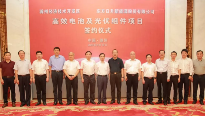 8月18日,东方日升新能源股份有限公司与滁州经济技术开发区在滁州举行高效电池及光伏组件项目签约仪式。