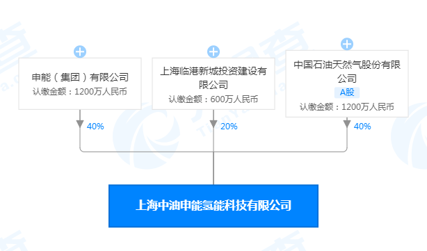 中油申能氢能公司有三大股东,中国石油和申能有限公司并列为第一大股东,两者均持有40%的股份。