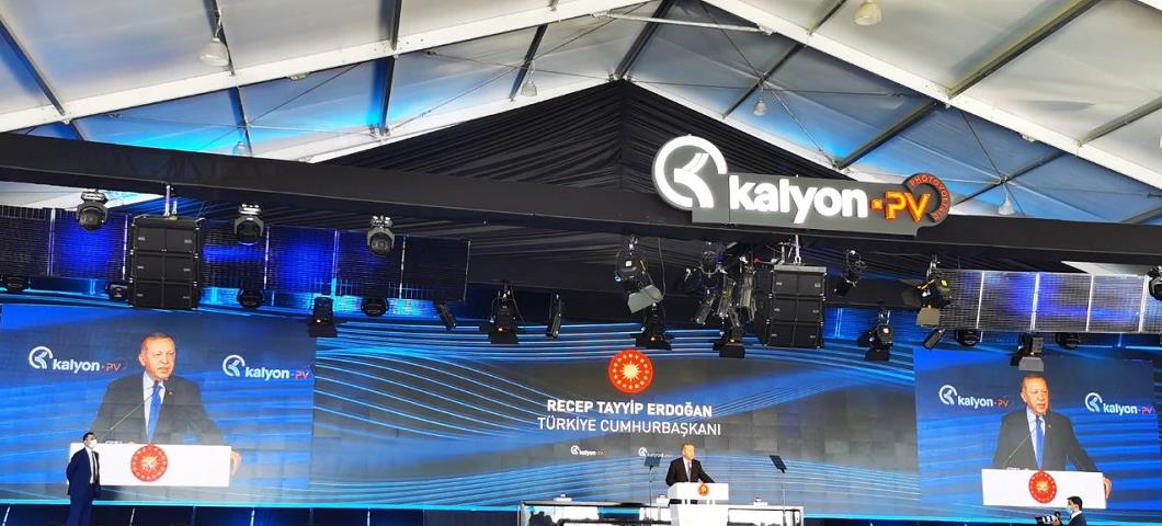 埃尔多安总统一下直升专机,就在Cemal Kalyoncu董事长的陪同下前往车间,从拉晶车间、切片车间、电池片车间到组件车间进行了详细的全过程参观视察,并不时询问了解园区建设与生产情况,高度肯定光伏产业园的科技创新水平。参观视察后,埃尔多安总统和部长们来到典礼会场,在百余位重要嘉宾的见证下,典礼活动隆重举行,土耳其财政部长、能源部长、KALYON集团董事长Cemal Kalyoncu先后致辞讲话。