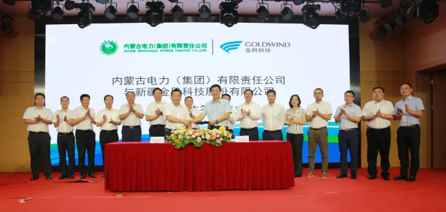近日,新疆金风科技股份有限公司(以下简称“金风科技”)与内蒙古电力(集团)有限责任公司(以下简称“内蒙古电力集团”)就新能源领域的相关合作,在北京亦庄签署战略合作协议。金风科技董事长武钢、副总裁兼风电产业集团总经理李飞、副总裁兼天润新能董事长薛乃川、内蒙古电力党委书记兼董事长贾振国、党委委员燕林生等有关领导,共同出席了本次签约仪式。