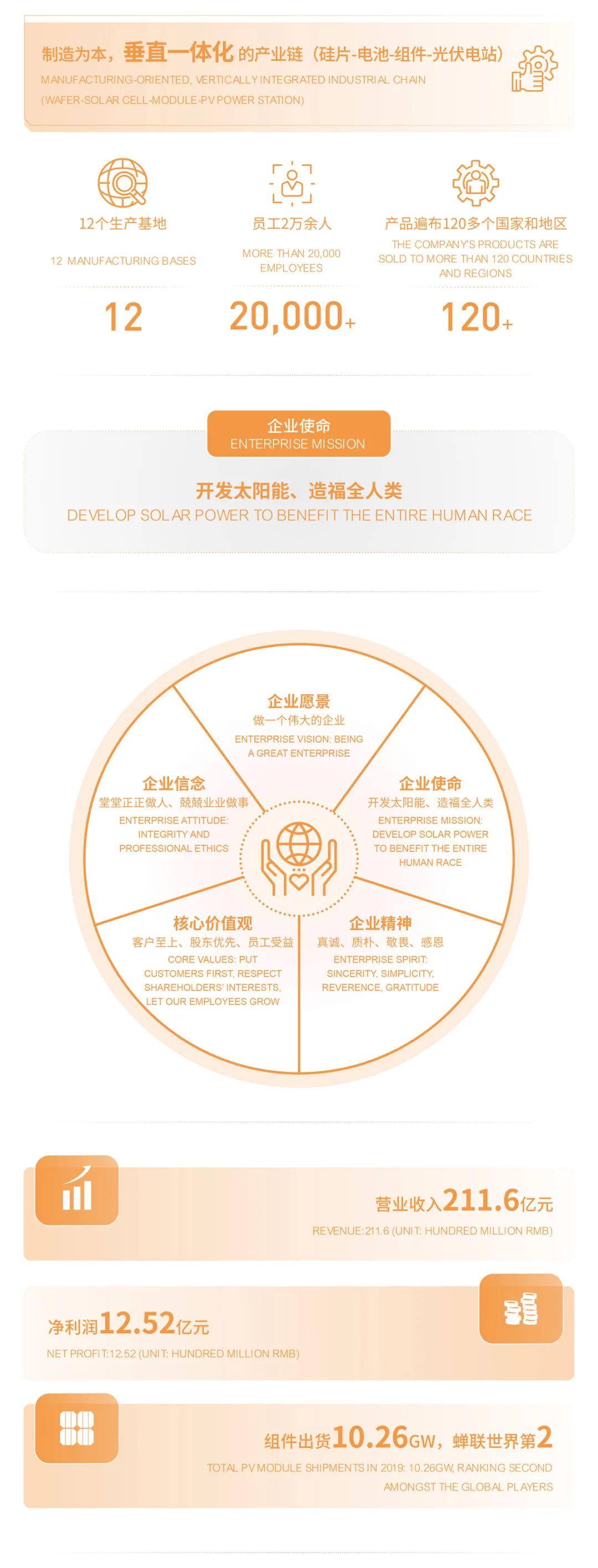 8月28日,晶澳科技发布2019年社会责任报告(中英文版),此报告为晶澳科技及其子公司发布的第三份社会责任报告。报告通过“真诚·筑牢善的根基”“质朴·培育善的果实”“敬畏·守护善的沃土”和“感恩·共沐善的照耀”等四个方面,综合阐述晶澳科技2019年社会责任实践。