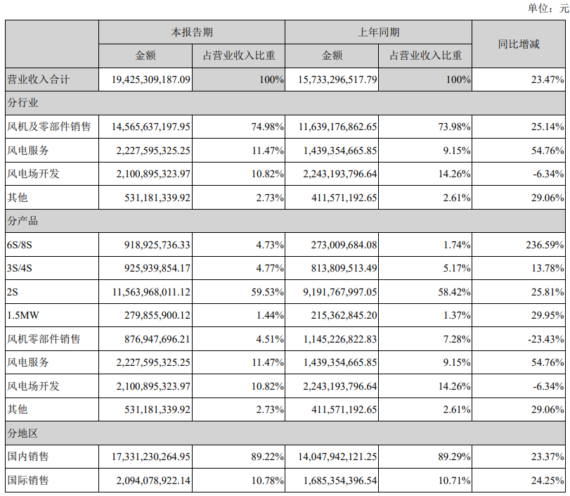 报告期内,公司实现风电服务收入222,759.53万元,较上年同期增长54.76%。