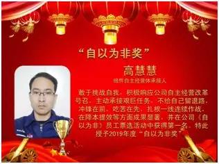 组件自主经营体承接人高慧慧获得“自以为非奖”
