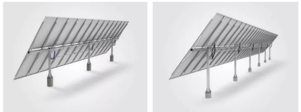 柔性支架:将支架系统的部分结构件采用钢丝绳替代,施加特定张紧力,满足光伏组件铺设需求。可适用多种场合,尤其适合用于如水池/河流/山地等需要超大跨距的场合。