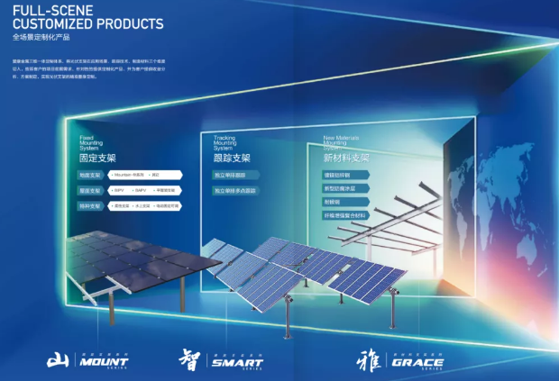 Mount系列固定支架系统多数应用于集中式光伏电站,具有规模大,环境恶劣(山地、戈壁、荒漠、滩涂等地)的特点,相应支架系统的经济性、安全稳定性、抗环境干扰性、多地形适应性都尤为重要。