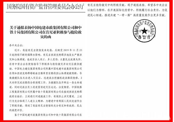 日前,国务院国有资产监督管理委员会办公厅发文,在中央企业范围内对电建市政公司在肯尼亚积极参与抢险救灾的义举进行了通报表扬。