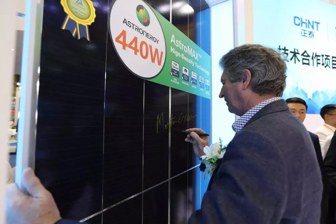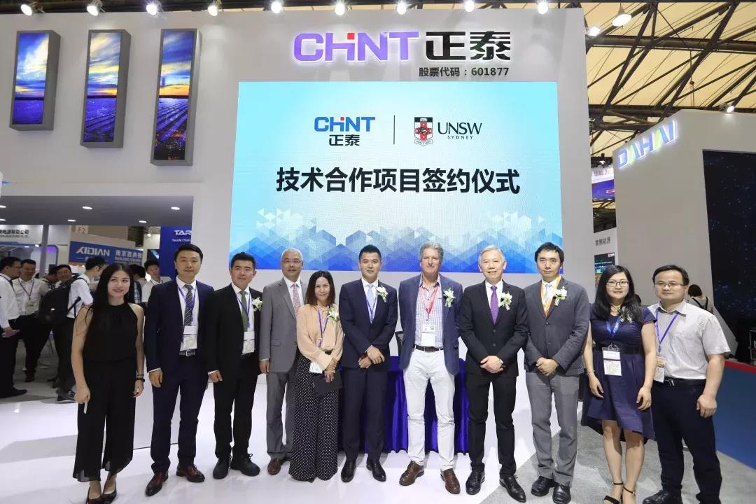 同期,与世界顶尖学府澳大利亚新南威尔士大学正式签订技术合作协议,就未来高效电池组件的发展方向和技术路线进行深入合作,为正泰新能源光伏高效技术研发带来强劲的技术推动力,亦是公司与世界顶尖教研机构开展产学研合作的一个新起点。彼时,世界太阳能电池领域的权威代表性人物,举世公认的“光伏之父” 马丁·格林教授也曾郑重地在正泰组件上留下亲笔签名。