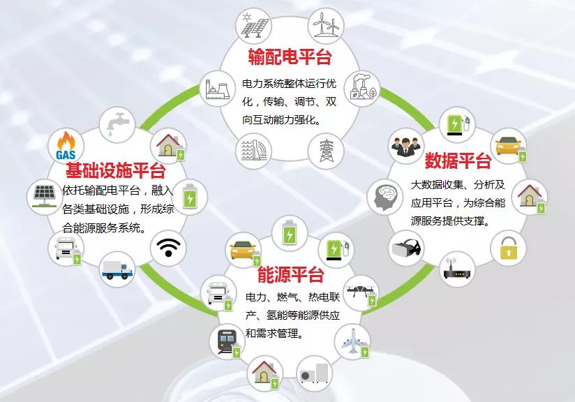 能源平台融合电力、燃气、热电联产、氢能、蓄电池、基于电动汽车的移动储能等多种能源设施,实现多能互补、合理共享,是以电为中心的输配电平台在其他能源领域的延伸。