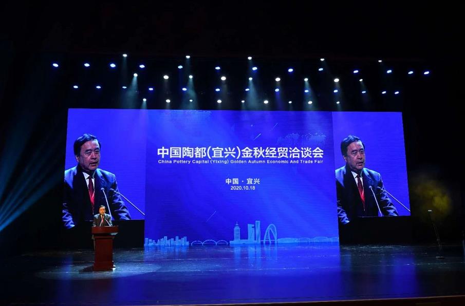 2020年10月18日上午8点58分,在《宜兴美》的余音绕梁中,2020中国陶都(宜兴)金秋经贸洽谈会开幕式在宜兴保利大剧院拉开帷幕。