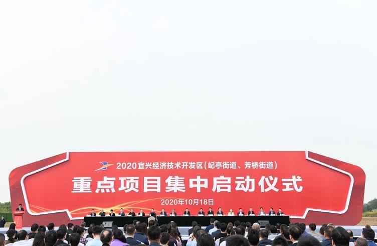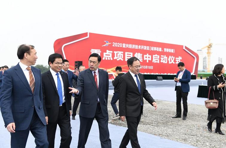 在经贸会开幕式会后,在经开区先科项目现场举行了“2020宜兴经开区重点项目集中启动仪式”,赵振元同志作为主嘉宾席上就住并与陈寿彬市长、梅中华政协主席、裴焕良常委、刘英副主任等一起,共同见证了15个重点项目的集中开工启动。