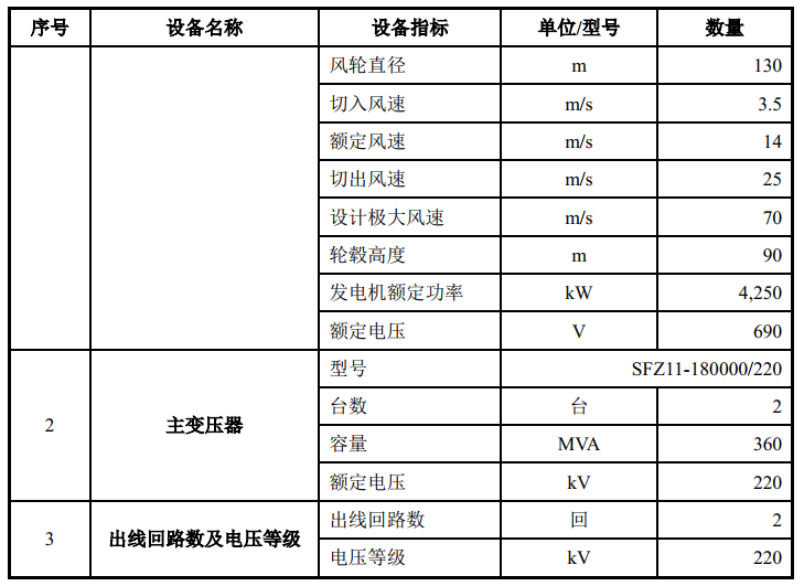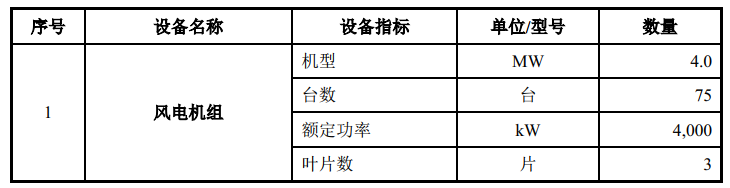 风电场位于海上,处于环境潮湿、重盐雾地区,在选择电气设备时需考虑上述不利因素。根据实测地形资料,结合海上风电场的施工工艺和现场运输条件,考虑风电机组的制造水平、经济性、成熟度和业绩等多因素,结合本工程的特点及海上风电机组市场现状,本项目可研阶段选择经济性较优的单机容量为4.0MW 的风电机组进行布置。风电场拟采用的主要设备具体情况如下: