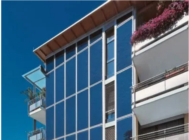 通过不同的工艺,将光伏产品外观制作成多彩化,可应用于商业、写字楼等公建项目的幕墙。