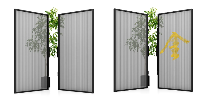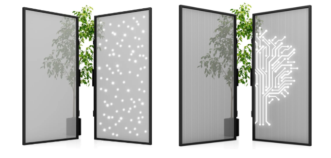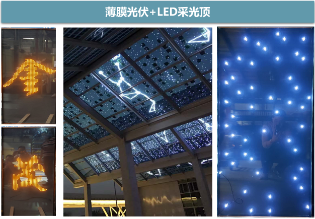 在基础款上增加LED显示功能,可实现定制图案(满天星空、地方代表文化图案)内容,实现白天发电,夜间发光亮化,增加商业建筑亮点。