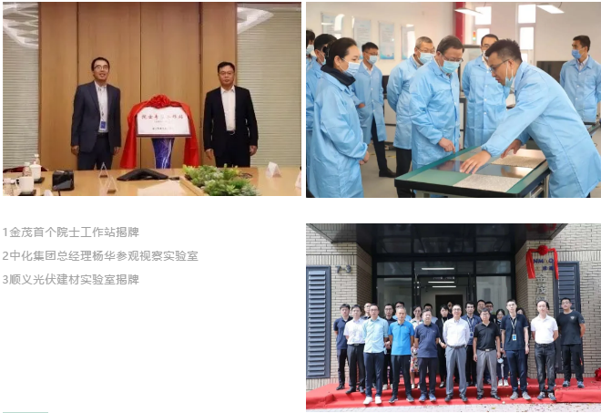 中国金茂从2018年即由总部产品管理中心牵头密集开展了光伏应用调研与技术研究,2019年04月金茂绿建组建了BIPV专项研发团队。研发团队在2019年09月成功完成了金茂墙和金茂顶BIPV产品立项;2019年09月组建了国内首个BIPV院士工作站,2020年08月完成顺义光伏建材实验室的投入运营。2020年09月团队迎来了中化集团杨华总经理的视察指导,同月邀请了建筑节能和光伏领域的内外部专家对研究成果进行评审,专家给予了高度肯定和支持。