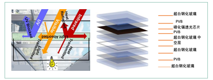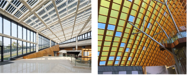 可以应用在建筑阳光房、商业建筑中庭采光顶等位置,在满足建筑光线的要求下,还可增加建筑发电属性,为建筑整体降低能耗。