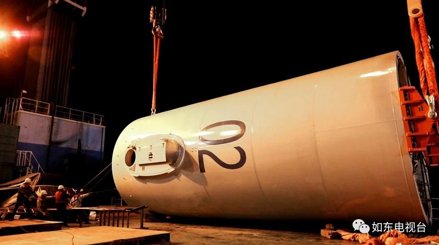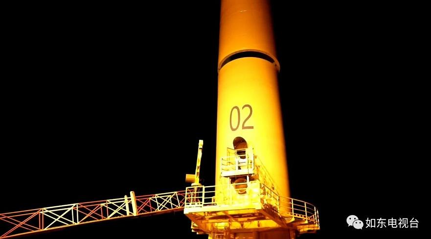 中广核新能源控股有限公司江苏如东H8海上项目部项目副经理 王辉剑: 如东H8项目就在今年5月份正式开工,打了首桩,到目前为止,已经完成了12根单桩施工,整个风电场一共有65台风机,其中有25台是4兆瓦的上海电气的风机,然后有40台5兆瓦的海装的风机,明年6月份完成首批并网发电。