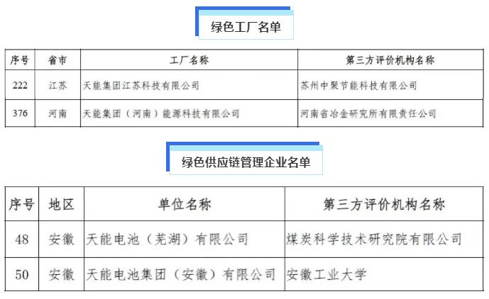 “喜事连连”!天能再添四枚国字号绿色“金名片”