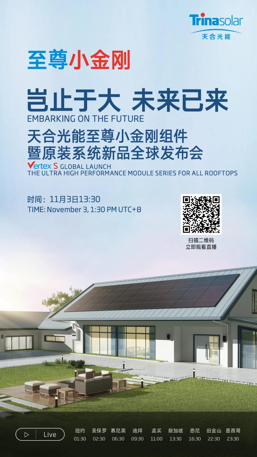 11月3日,山东济南,天合光能超高功率分布式专享组件新品至尊小金刚携原装高品质家用光伏新品,天合光能将与您直面行业问题,共同开启“岂止于大,未来已来”的新时代!