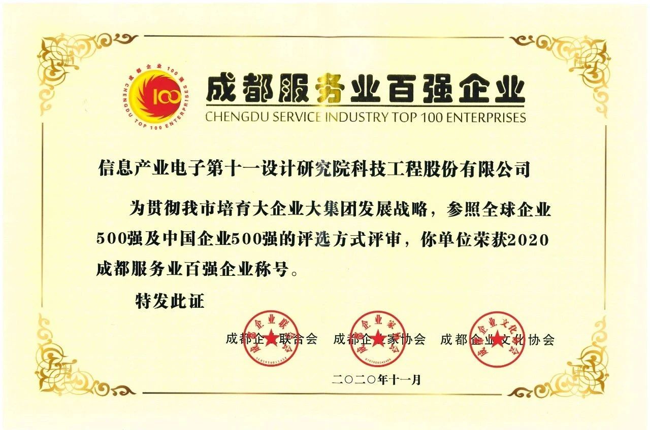 11月5日,成都企业联合会、成都企业家协会、成都企业文化协会等单位在“2020成都百强企业发布会暨企业数字化转型高峰论坛”会上隆重公布了“2020成都企业100强”、“2020成都服务业100强”榜单。十一科技以优异业绩荣获“2020成都企业100强”第34名以及“2020成都服务业100强”第16名。