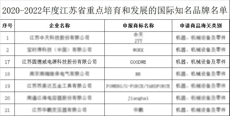 入选“江苏省重点培育和发展的国际知名品牌”