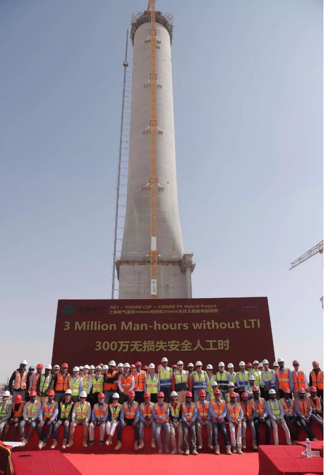 迪拜时间1月9日上午十点,上海电气担任总承包的全球最大光热项目——迪拜项目迎来重大节点,其核心建筑,222米的世界最高太阳能集热塔顺利封顶!