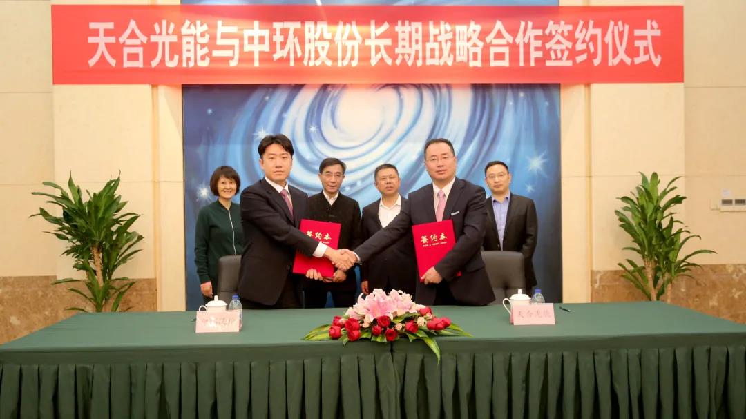 签约仪式在天合光能常州总部举行。天合光能董事长高纪凡、中环股份总经理沈浩平出席签约仪式。