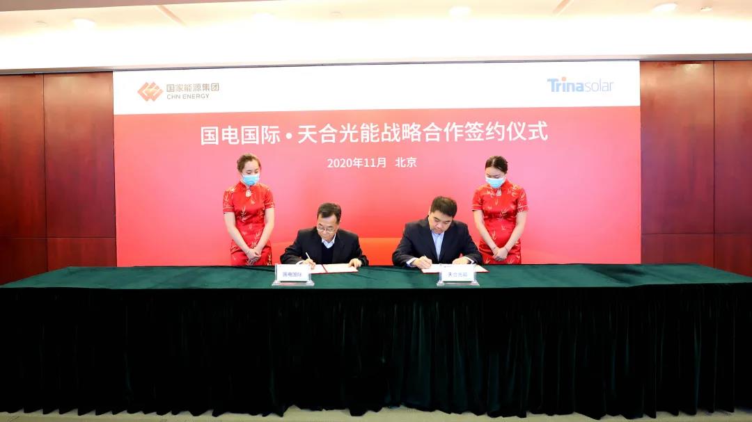 11月17日,天合光能股份有限公司与国电(北京)国际能源有限公司在北京举行战略合作签约仪式。双方将在亚太及其他海外重点市场,进行项目开发、战略投资、技术创新以及供应链整合,实现共同发展。